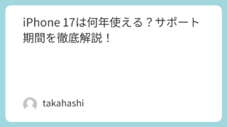 未分類 iPhone 17は何年使える?サポート期間を徹底解説! この記事では、iPhone 17がいつまで使えるのか、サポート期間を解説します。結論から言うと、iPhone 17は「OSアップデートが続く期間はおよそ7年」「快適にメイン機として使えるのは4〜5年」が一つの目安になります。過去のiPhon... 2026.03.10 未分類